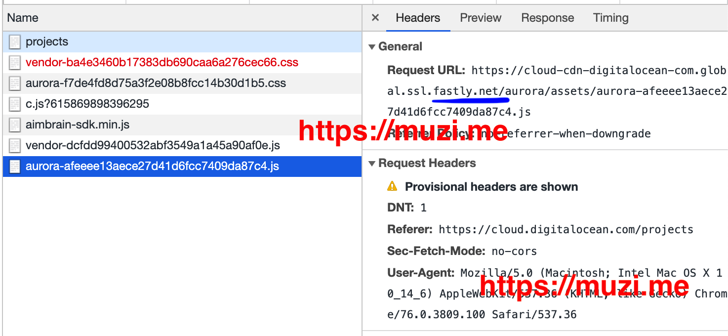 DigitalOcean (简称 DO) 家的服务器我一直在用,1G 内存 20G SSD 硬盘的 服务器 只要 $5/mo,更换 IP 免费,新建实例非常快。它的首页和登陆页能正常打开,但输入密码和验证码后无法进入后台,一直在等待加载 (pending),打开命令台发现是 DO 使用的 fastly.net CDN 静态资源无法加载,见下图: